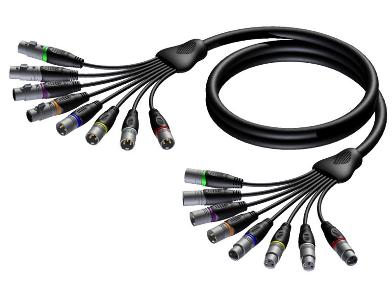 4 x XLR han & 4 x XLR hun - 4 x XLR hun & 4 x XLR han - Multi 8-core - 5 meter. MCR80 är en fabrikationskabel och blir inte producerad i löpande meter/rullar.