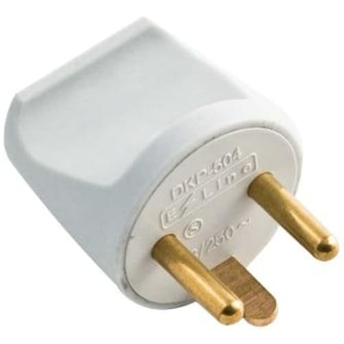 Stickpropp 230V med dansk jord (3 ben) rund, m/kabelavlastning, Vit