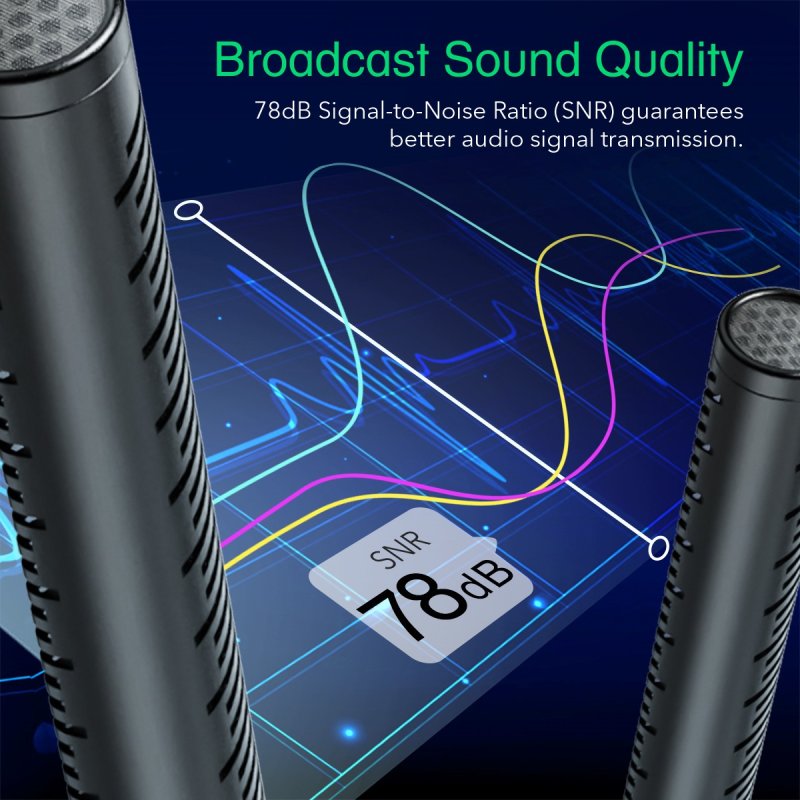 Hyper-cardioid shotgun mikrofon fokuserer D1 med høj følsomhed på -32dB (± 2dB) på at opfange rig detaljeret lyd lige foran den og afviser lyde fra side og bagfra.