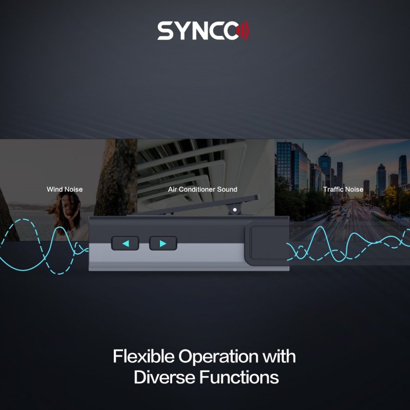 Den karakteristiske SYNCO Noise Blocker er med til at forbedre kredsløbslayoutet. Det fjerner interferensen af elektromagnetisk stråling fra WIFI, Bluetooth osv. og minimere den omgivende indvirkning på lydoptagelse og garantere en stærk og solid transmission.