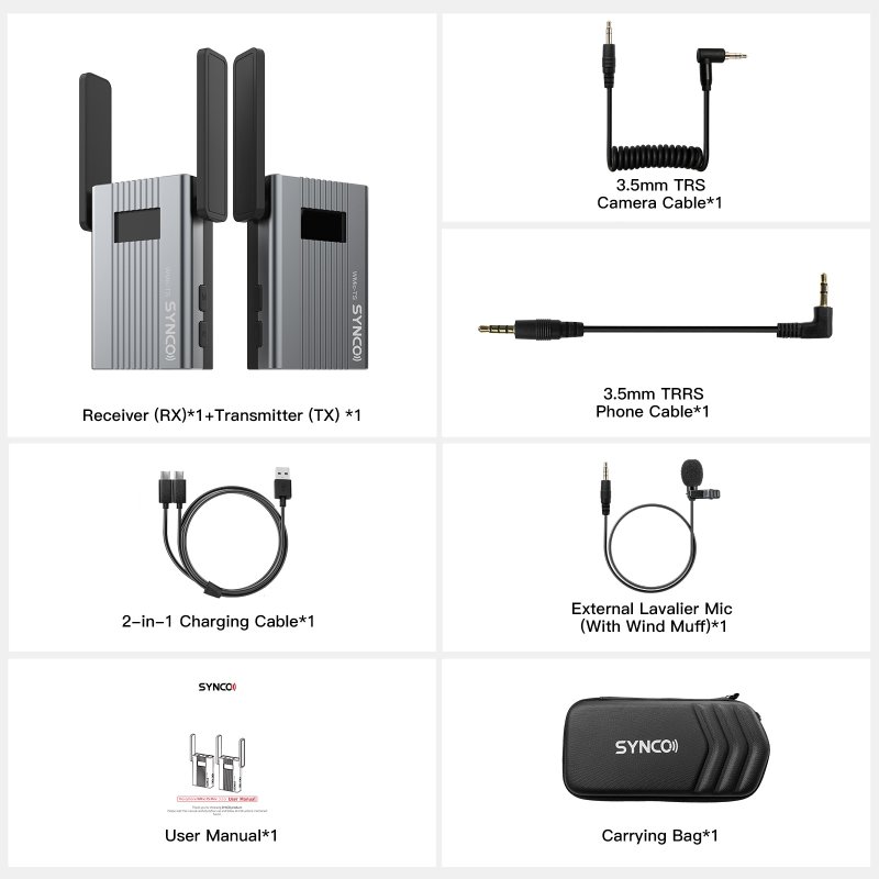 SYNCO WMic-TS är en 1 till 1 UHF trådlös mikrofon. Den trådlösa mikrofonen använder även SYNCO Wireless LinkLable-teknologin för att uppnå långdistansöverföring, förlitar sig på SYNCO Noise Blocker för att eliminera störningar för bättre ljudprestanda, har hopfällbara antenner för enkel bärbarhet och har valbar utgångseffekt för olika signalstyrkor. Det är en kostnadseffektiv lösning för att spela in dialog, intervjuer och tal med en person som talar.