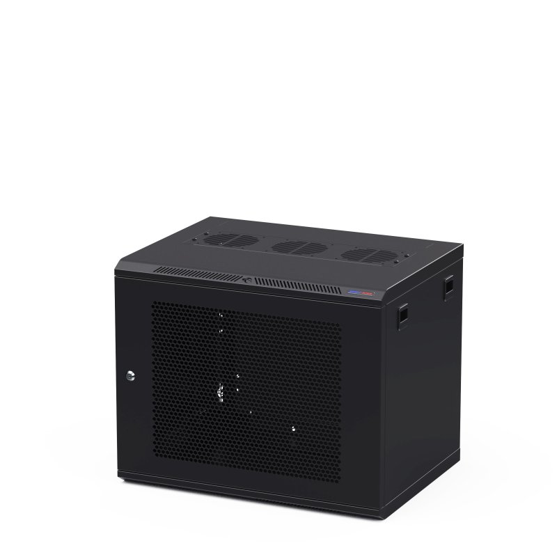 Väggmonterad 19" rack med polykarbonatdörr 9 enheter, användbart djup 400 mm, Vit