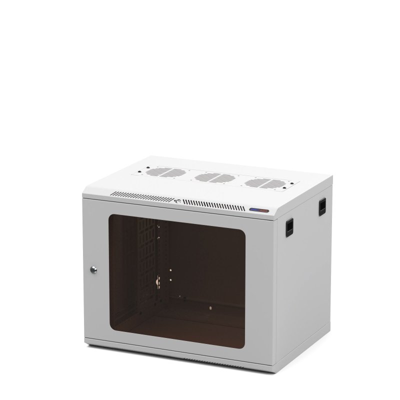 Väggmonterad rack med polykarbonatdörr 6 enheter, användbart djup 400 mm