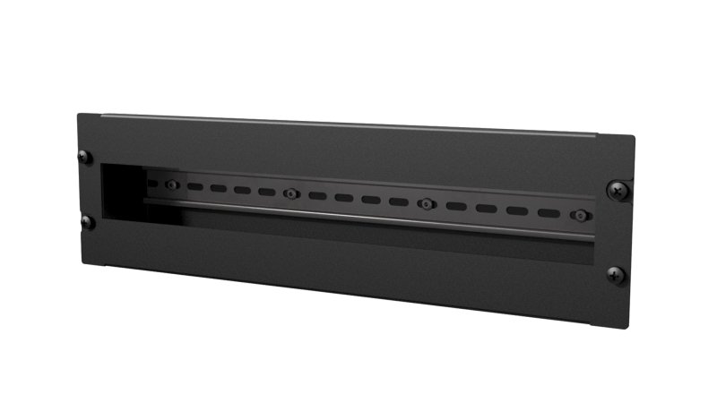 BDR03 er et 19 "panel med DIN-skinne, der kan rumme op til 24 moduler. DIN-skinnen er monteret på et separat beslag for nem installation. Det tilbyder den perfekte løsning til at integrere DIN-moduler i et 19" rack. Integrerede stempelaflastningsspalter findes på bagsiden af panelet sammen med en jord terminal.