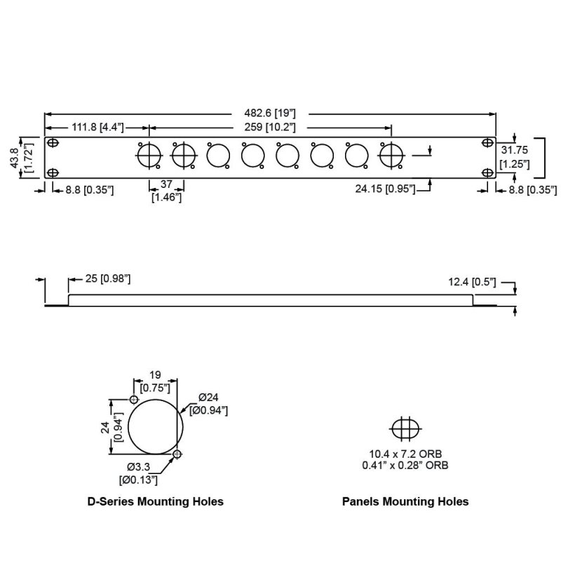 U-rackpaneler med huller til 8 Neutrik D-serie stik (XLR, Speakon, RJ45 osv.)