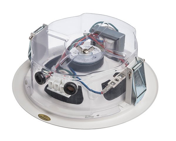Den 6W drevne højttaler er udstyret med en 130mm full-range højttaler og en 100V transformator med 3 effektindstillinger. Det pulverlakerede metal, lignende RAL9016, garanterer langsigtet holdbarhed. Det innovative luftstrømningssystem giver højttaleren lydkarakteristik, som normalt tilskrives konventionelle bashøjttalere. En ekstremt flad konstruktionsmetode tillader en lav monteringsdybde på kun 70mm, med mindre end 1 kg i produktvægt. Højttaleren sikres via Beskyttelsesklasse IP21C imod miljøpåvirkninger. Højttaleren egner sig perfekt til installationer hvor dybden er begrænset. Højttaleren egner sig til lofter med tykkelser på omkring 3 - 45mm. Specifikationerne relaterer primært til massive lofter. Lofter af blødere materiale behøver muligvis en større tykkelse. Stærkere kabler og andet tilbehør kan også resultere i ændringer i setup'et.